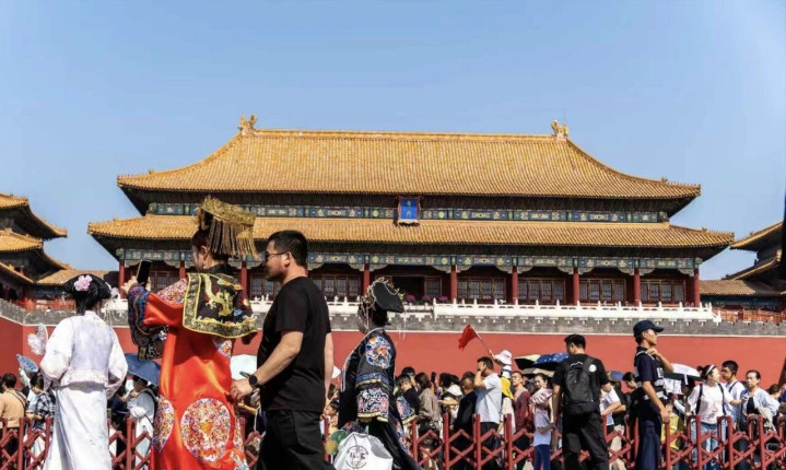 国庆中秋长假:北京故宫午门前游客大排长龙。(图/IC photo)